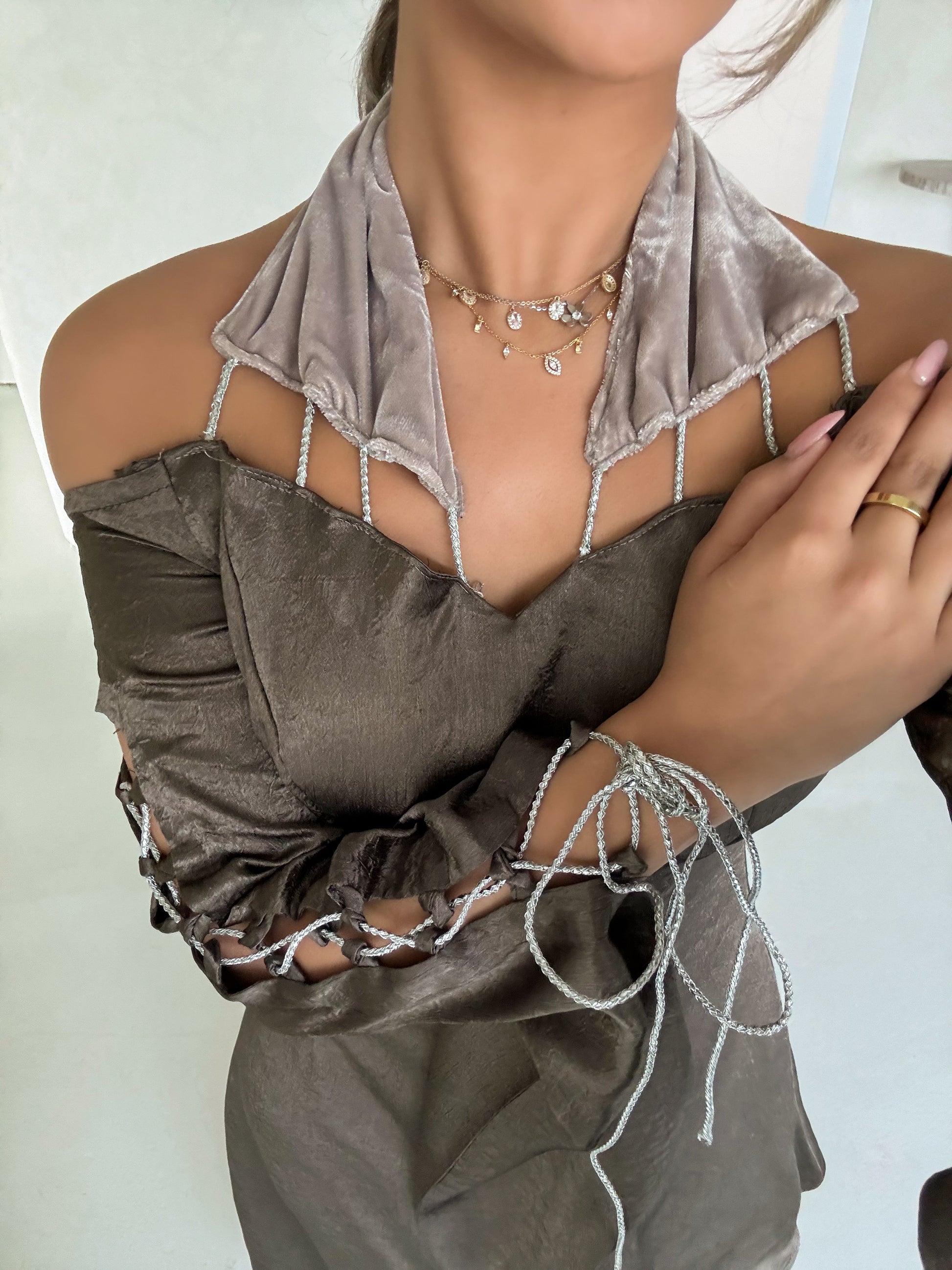 الجزء المخمل الي بالدراعه خالص ❌ راح يتم استبداله بخام عادي بنفس اللون او مخمل درجه ثانيه